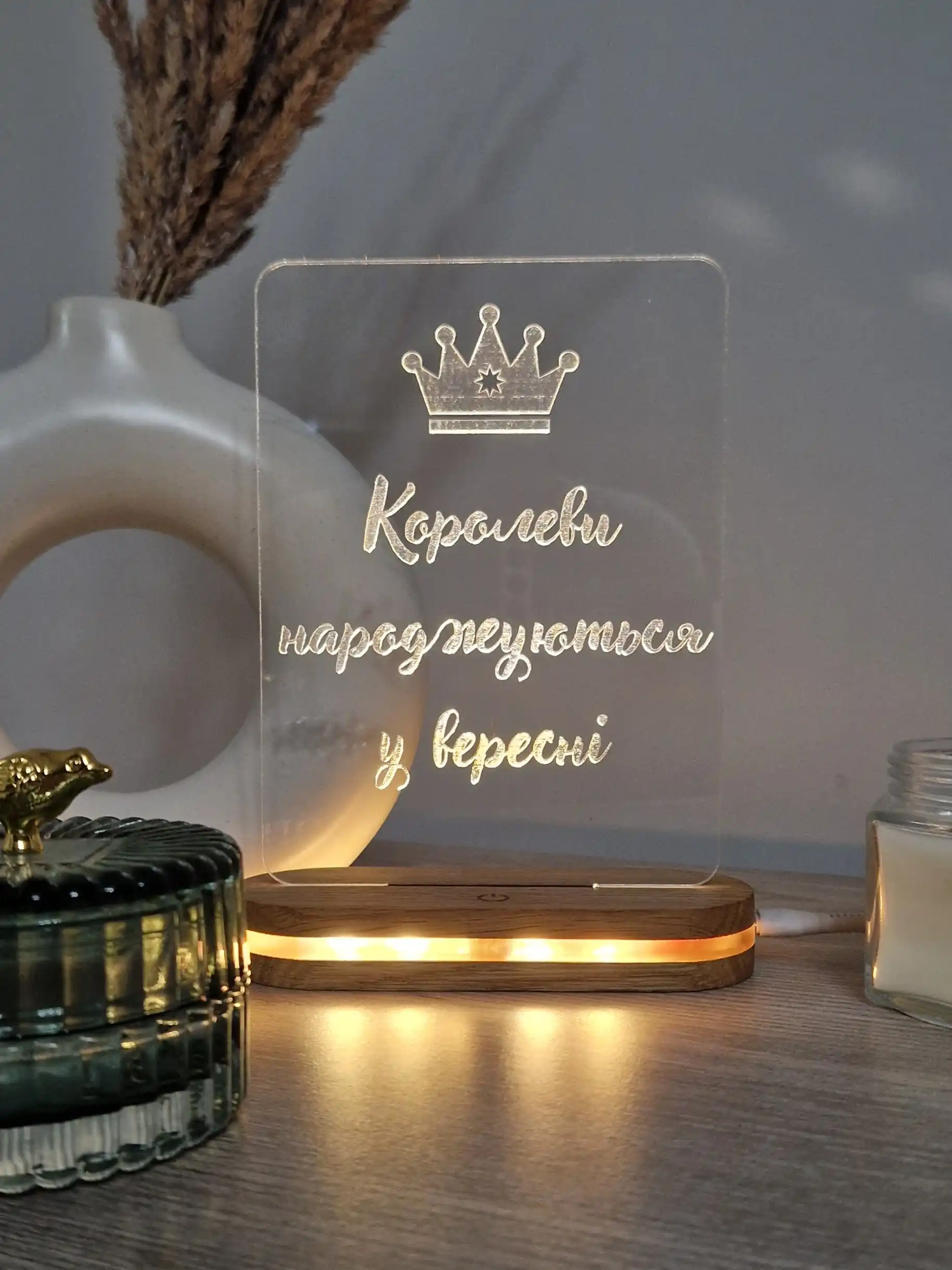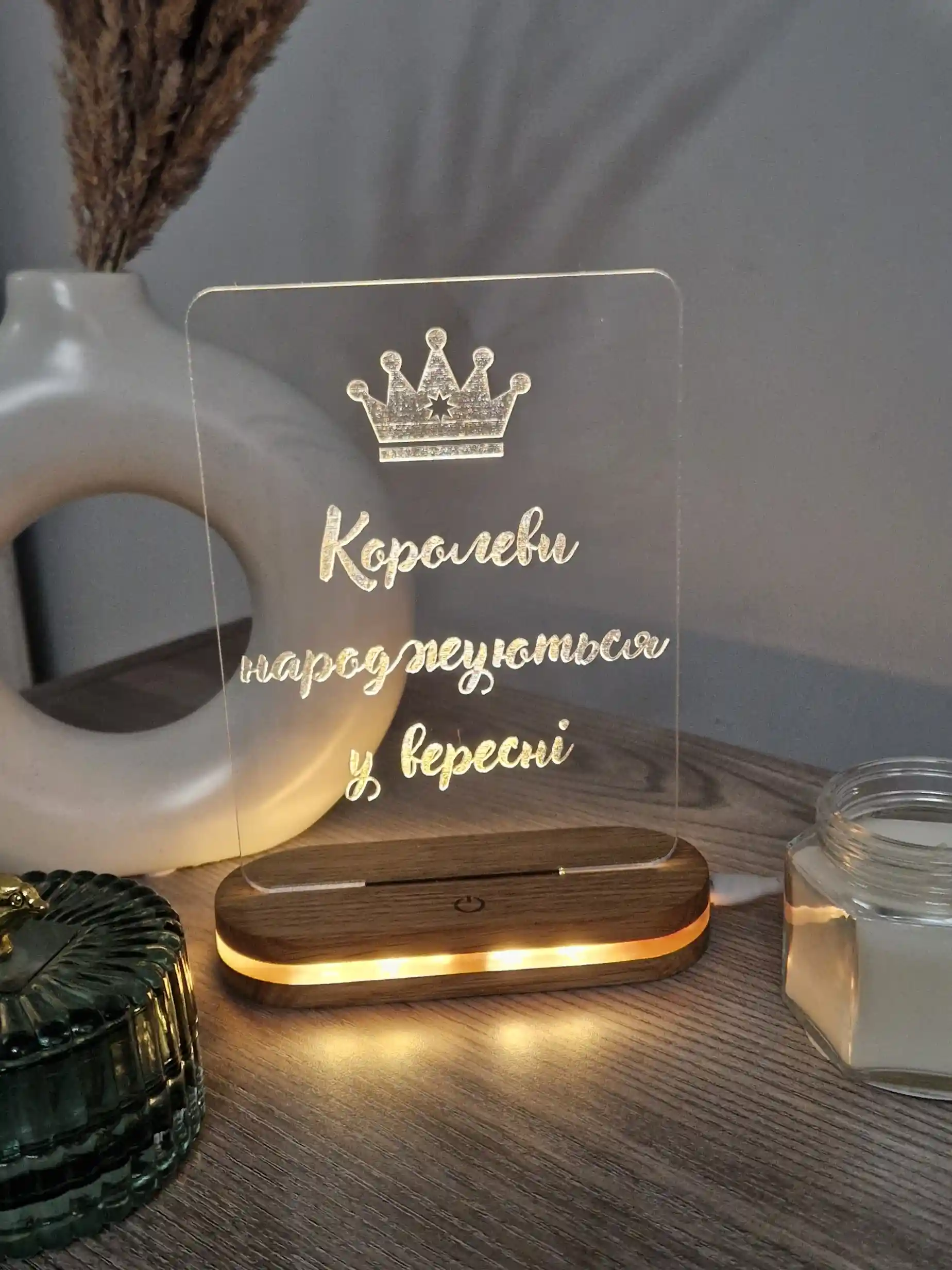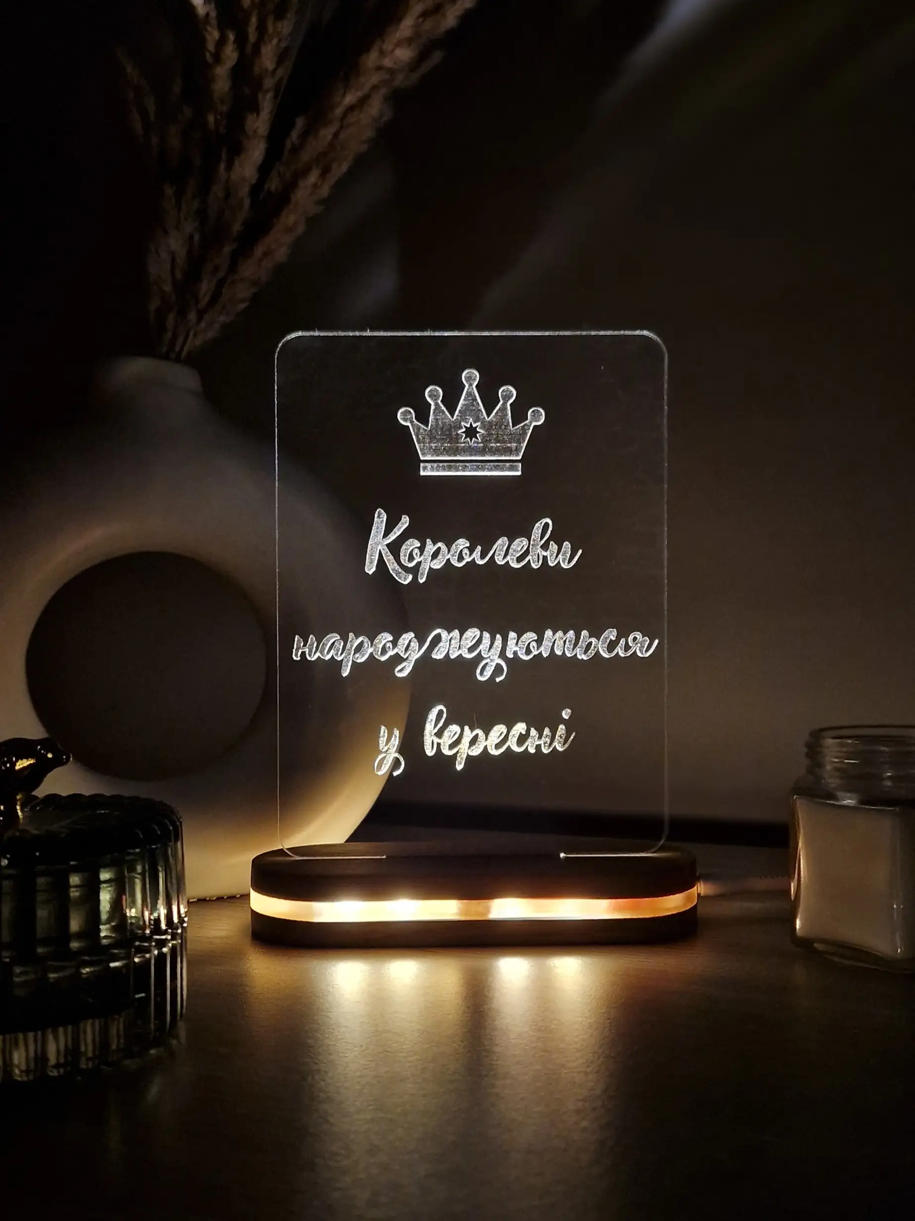 Індивідуальне гравіювання: Максимально швидке та ефективне гравіювання персоналізованого повідомлення чи ім’я робить цей світильник ідеальним подарунком на будь-який привід. Зверніться до нас, і ми зробимо все можливе, щоб ваші індивідуальні надписи були готові якнайшвидше, не займаючи багато часу. (Приклади гравіювання на фото)