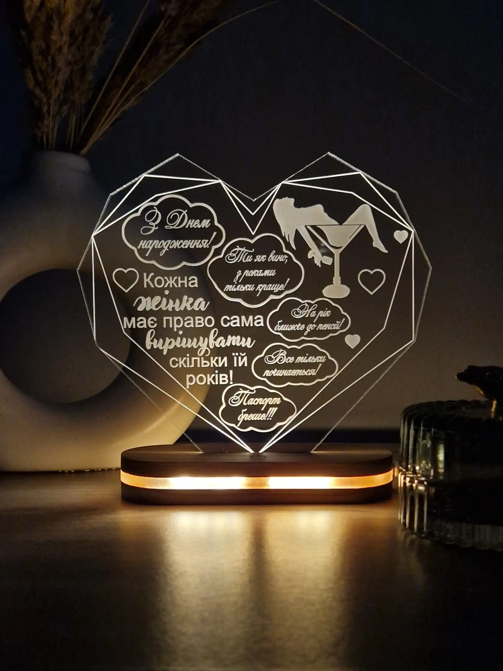 Акриловий світильник з гравіюванням на день народження