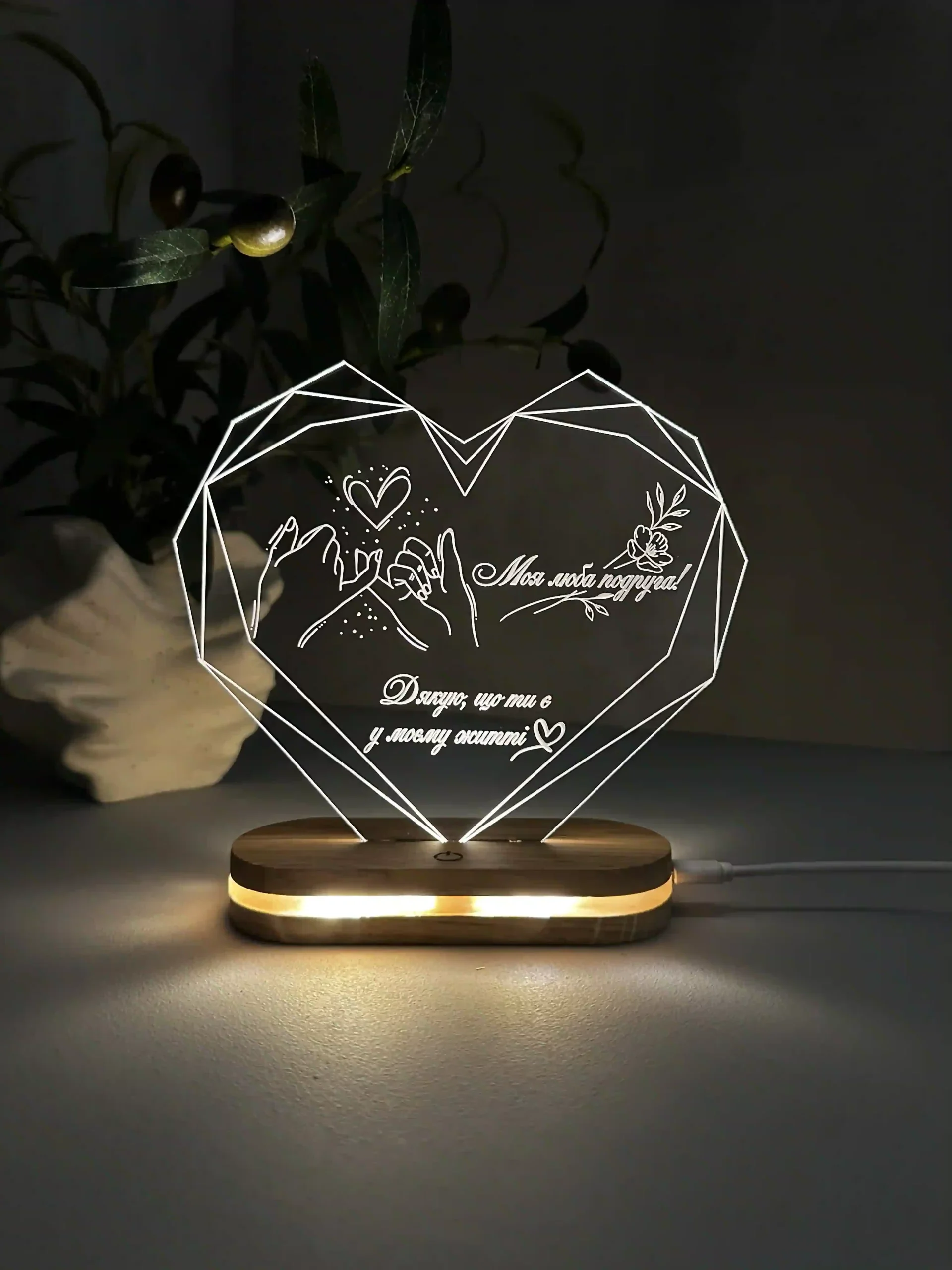 Індивідуальне гравіювання: Максимально швидке та ефективне гравіювання персоналізованого повідомлення чи ім’я робить цей світильник ідеальним подарунком на будь-який привід. Зверніться до нас, і ми зробимо все можливе, щоб ваші індивідуальні надписи були готові якнайшвидше, не займаючи багато часу. (Приклади гравіювання на фото)