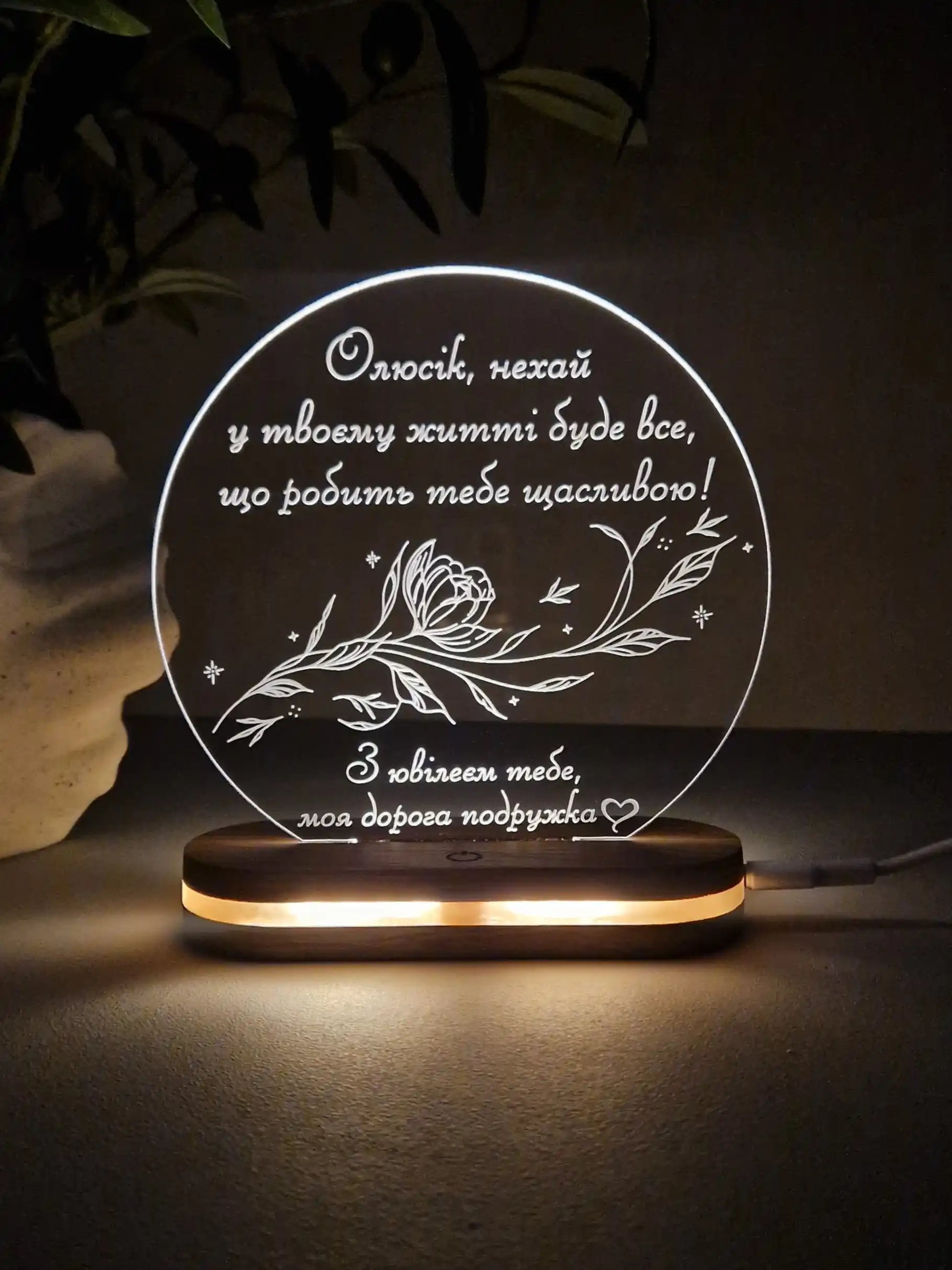 Акриловий світильник з гравіюванням як святковий подарунок