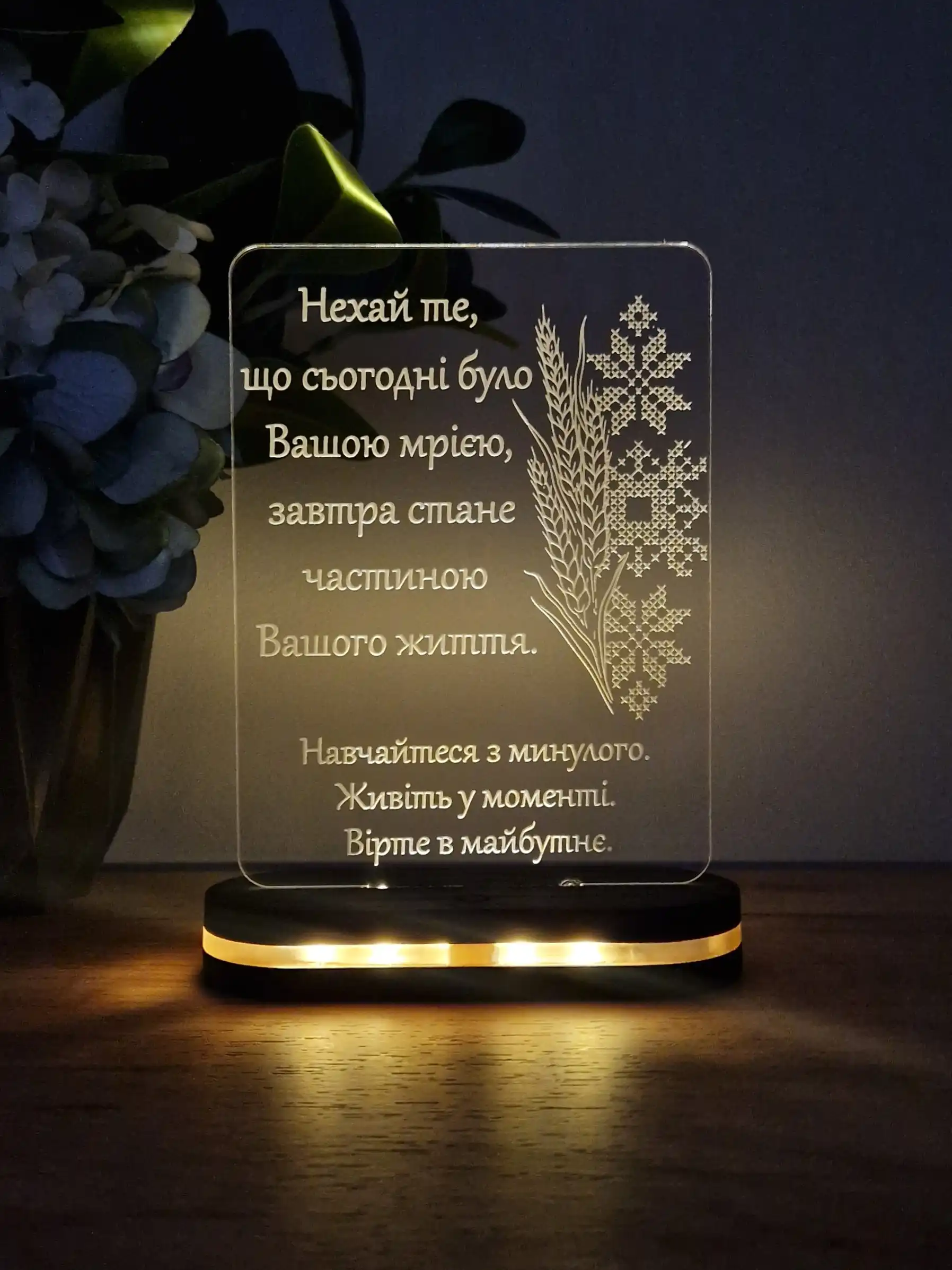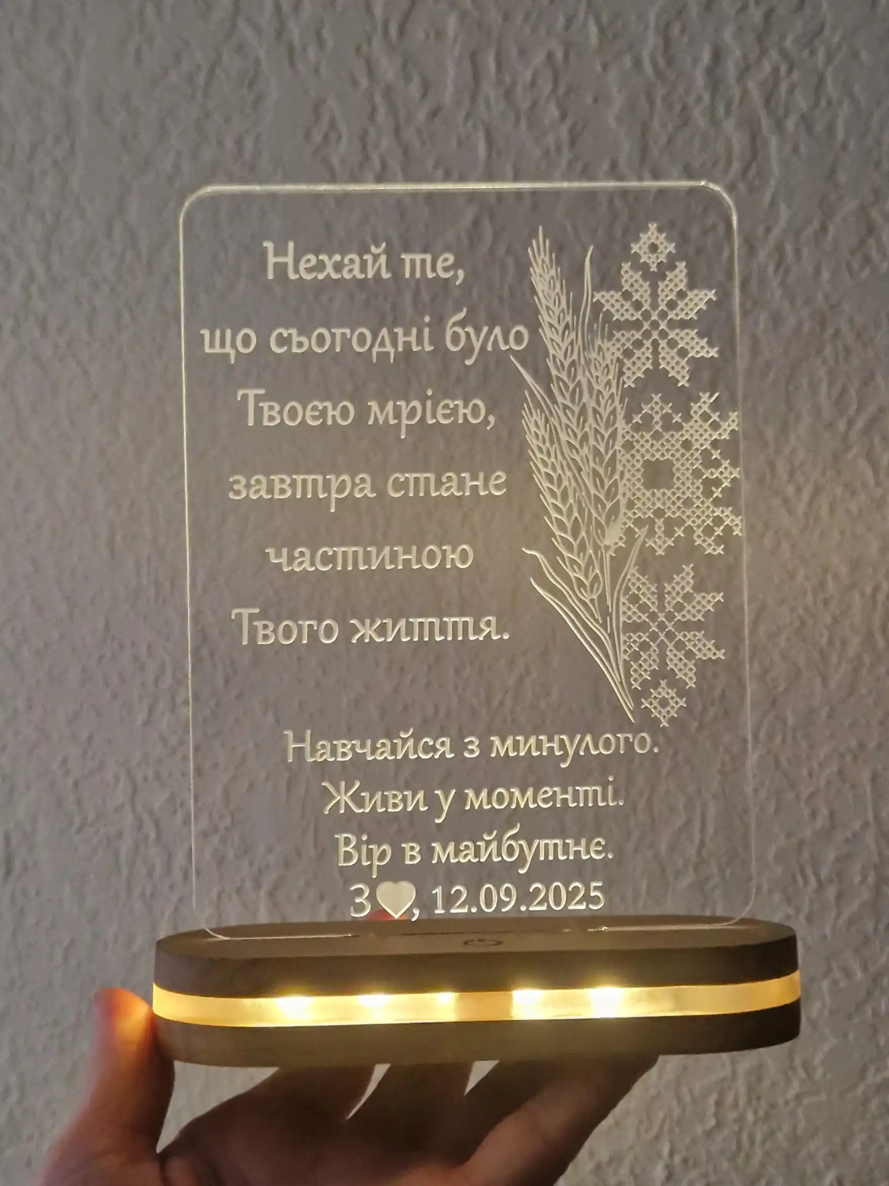 Індивідуальне гравіювання: Максимально швидке та ефективне гравіювання персоналізованого повідомлення чи ім’я робить цей світильник ідеальним подарунком на будь-який привід. Зверніться до нас, і ми зробимо все можливе, щоб ваші індивідуальні надписи були готові якнайшвидше, не займаючи багато часу. (Приклади гравіювання на фото)
