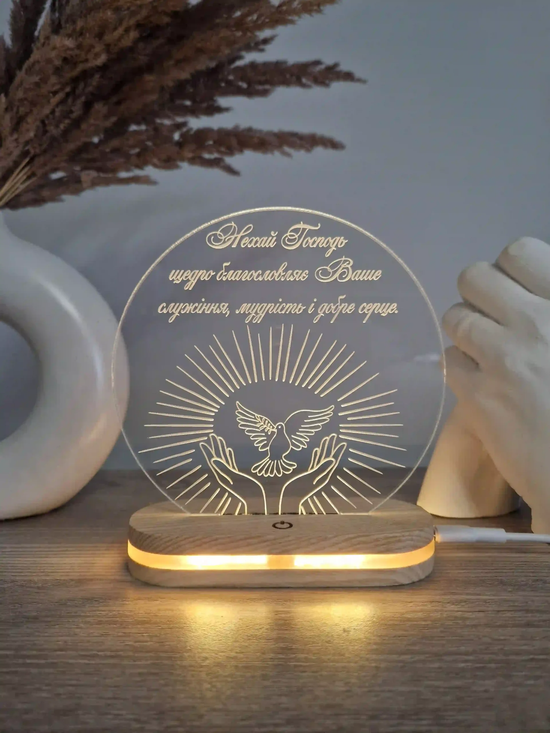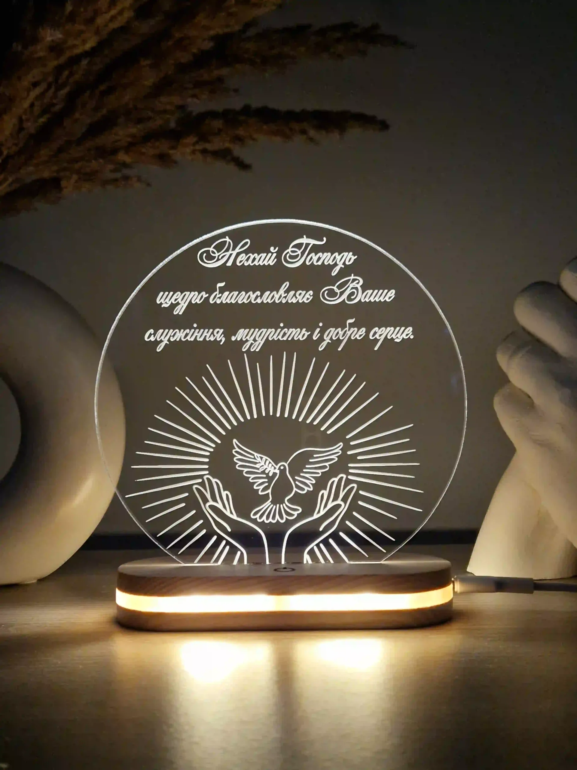 Акриловий світильник з гравіюванням для святкового інтер’єру