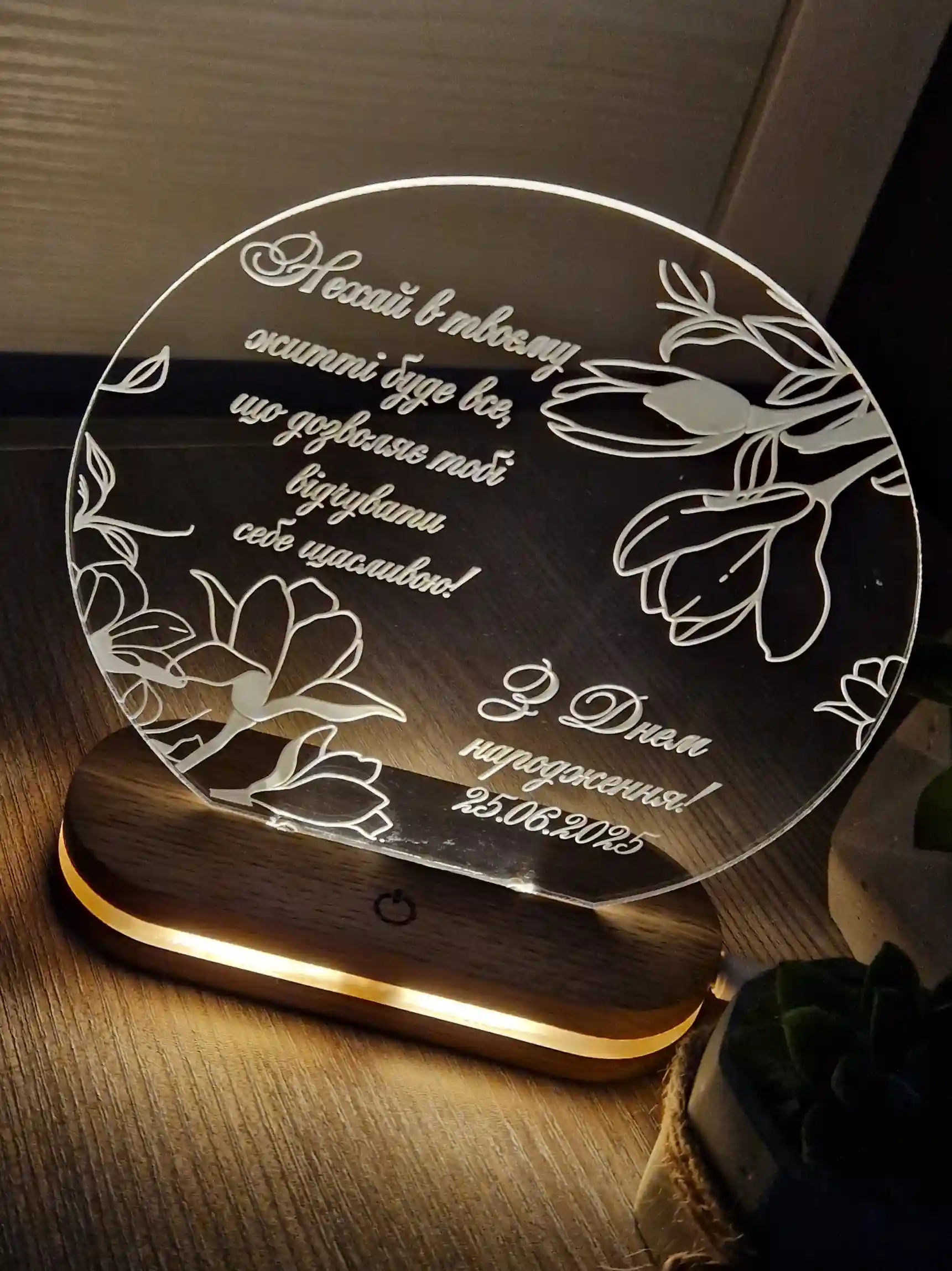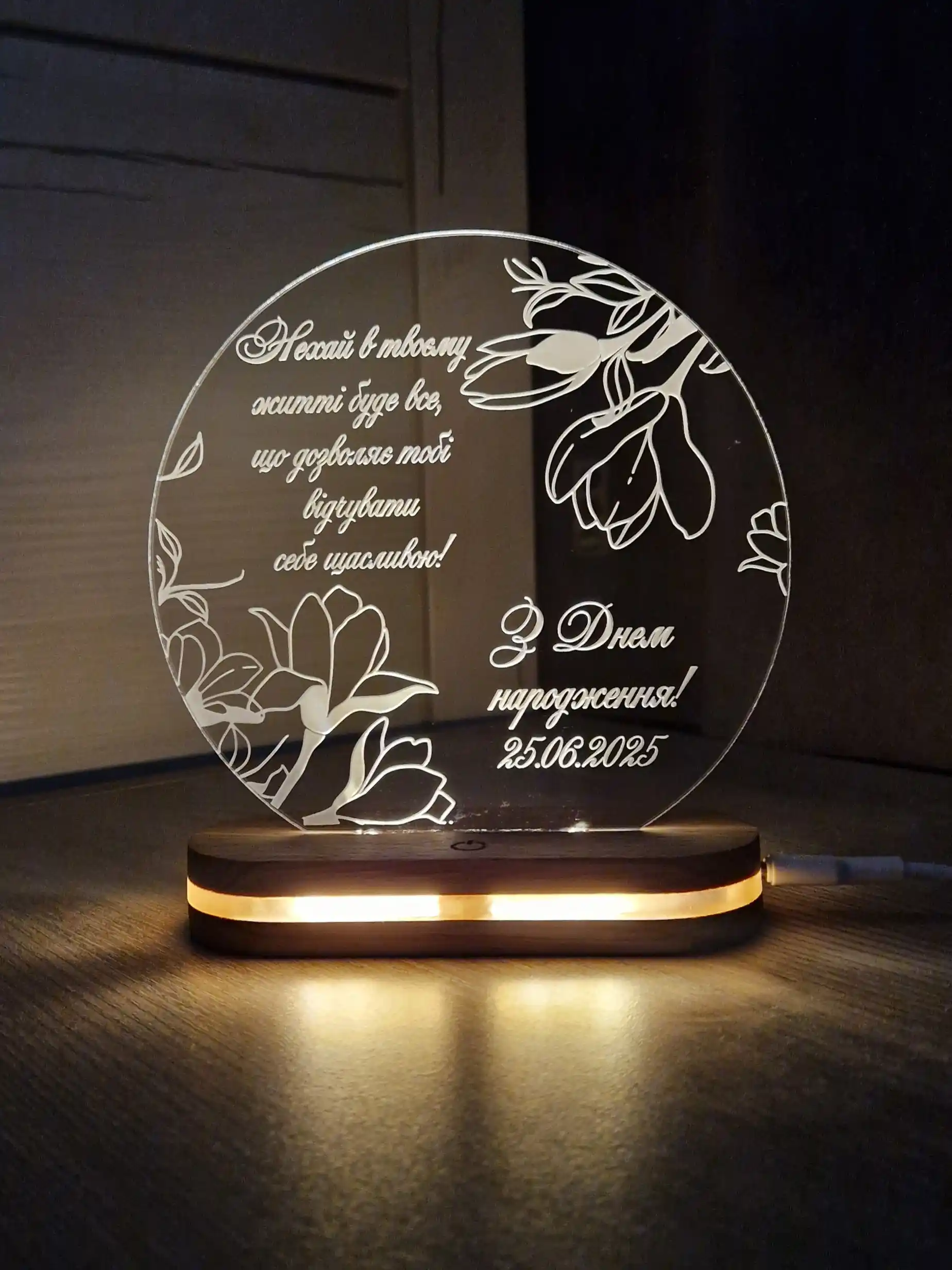 Індивідуальне гравіювання: Максимально швидке та ефективне гравіювання персоналізованого повідомлення чи ім’я робить цей світильник ідеальним подарунком на будь-який привід. Зверніться до нас, і ми зробимо все можливе, щоб ваші індивідуальні надписи були готові якнайшвидше, не займаючи багато часу. (Приклади гравіювання на фото)