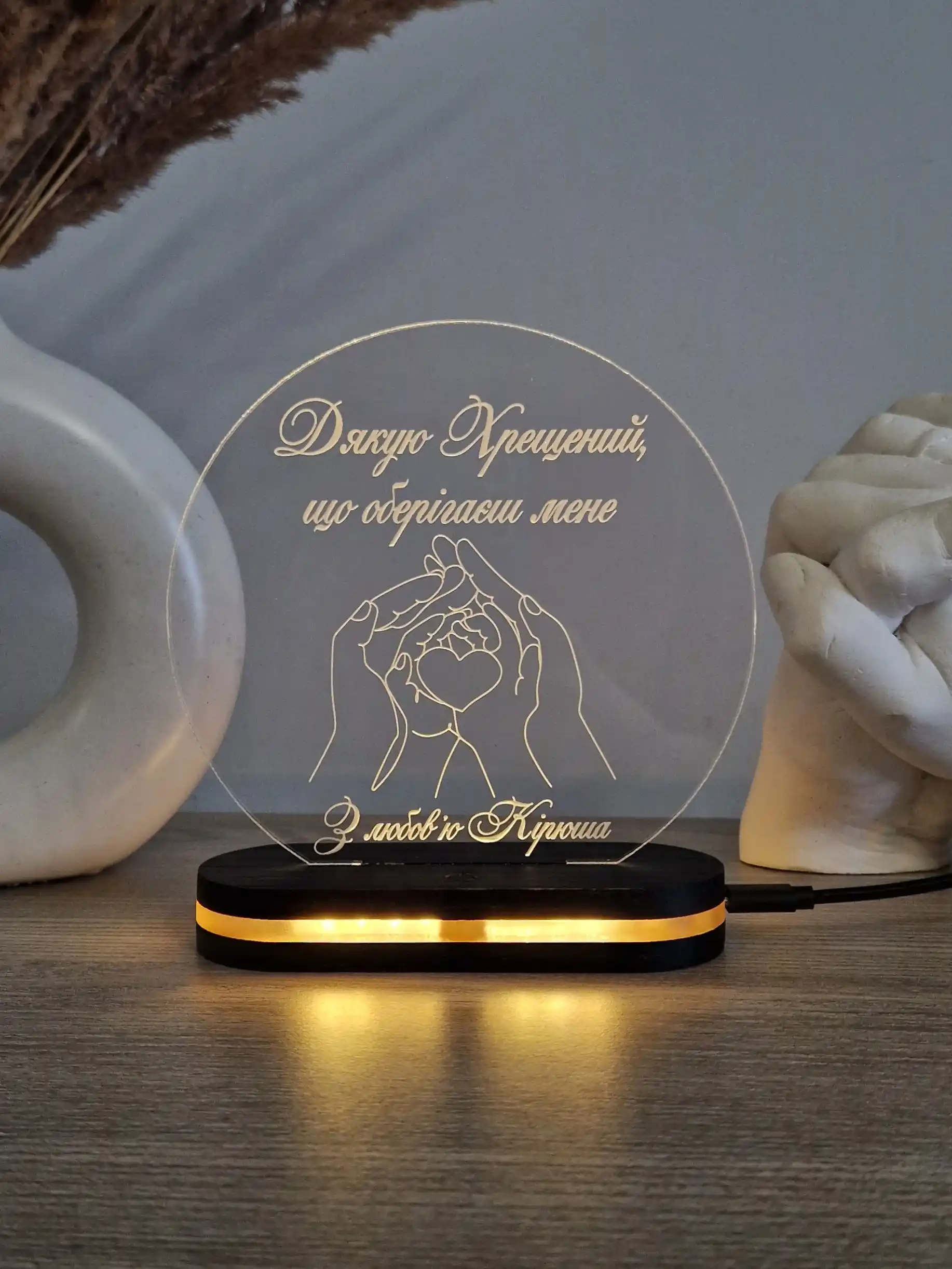 Індивідуальний світильник з гравіюванням для хрещених батьків