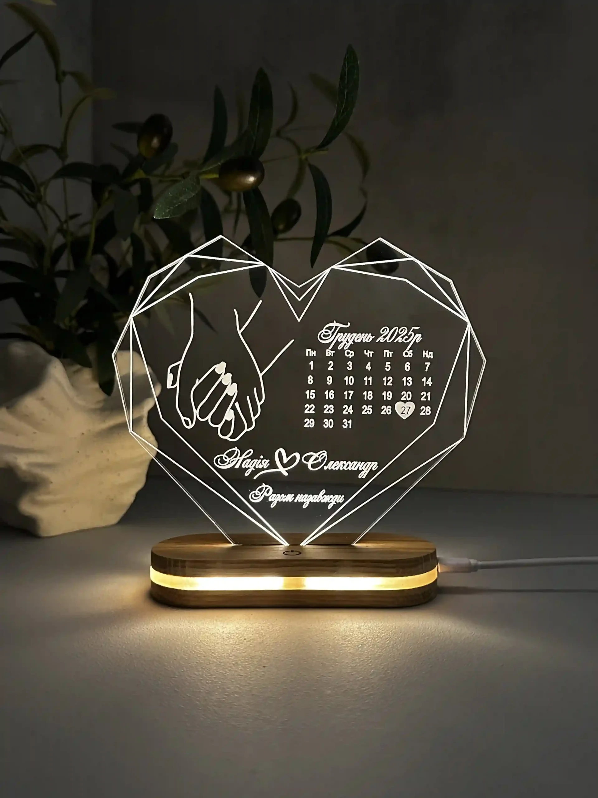 Індивідуальне гравіювання: Максимально швидке та ефективне гравіювання персоналізованого повідомлення чи ім’я робить цей світильник ідеальним подарунком на будь-який привід. Зверніться до нас, і ми зробимо все можливе, щоб ваші індивідуальні надписи були готові якнайшвидше, не займаючи багато часу. (Приклади гравіювання на фото)