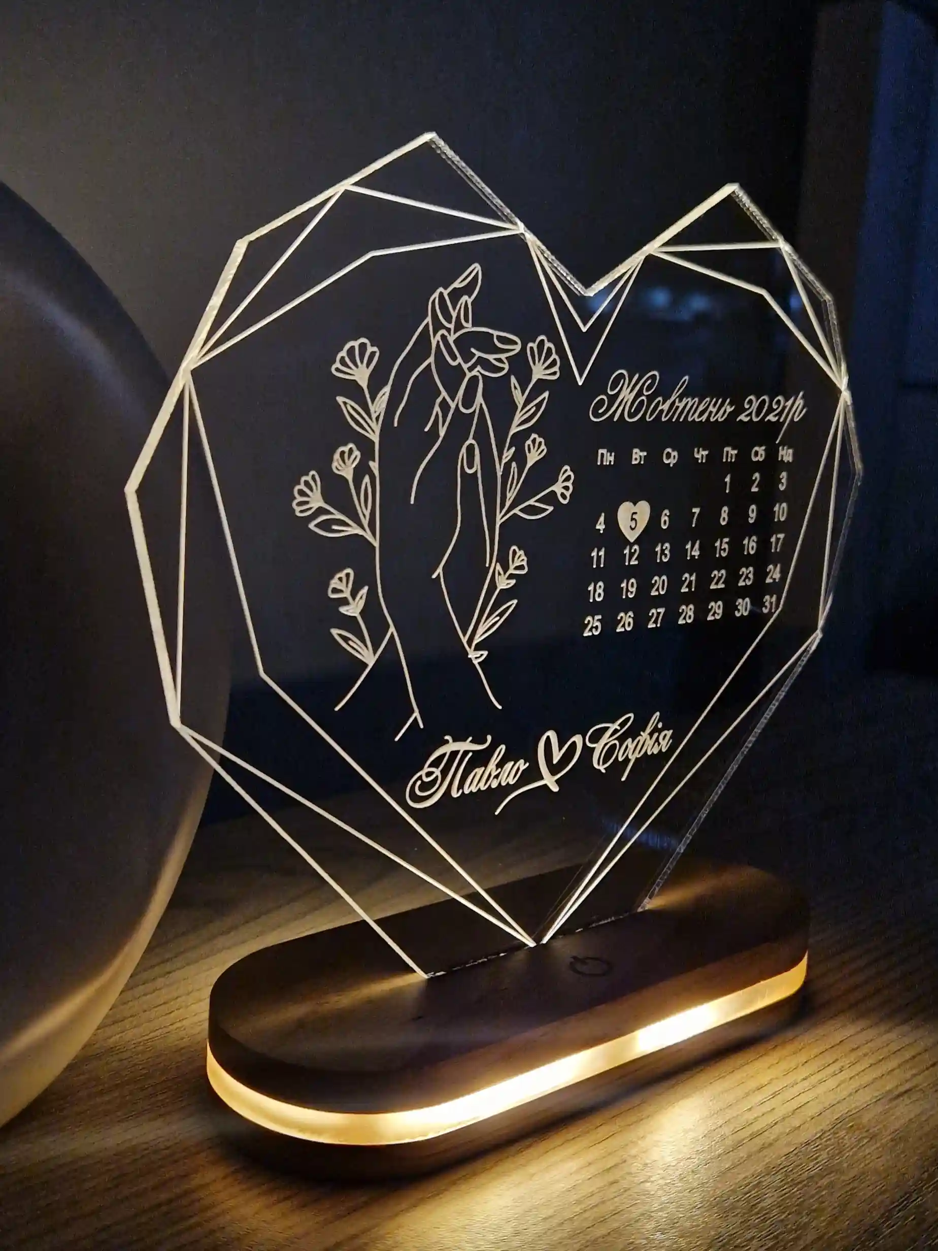 Світильник з датою та іменами на річницю