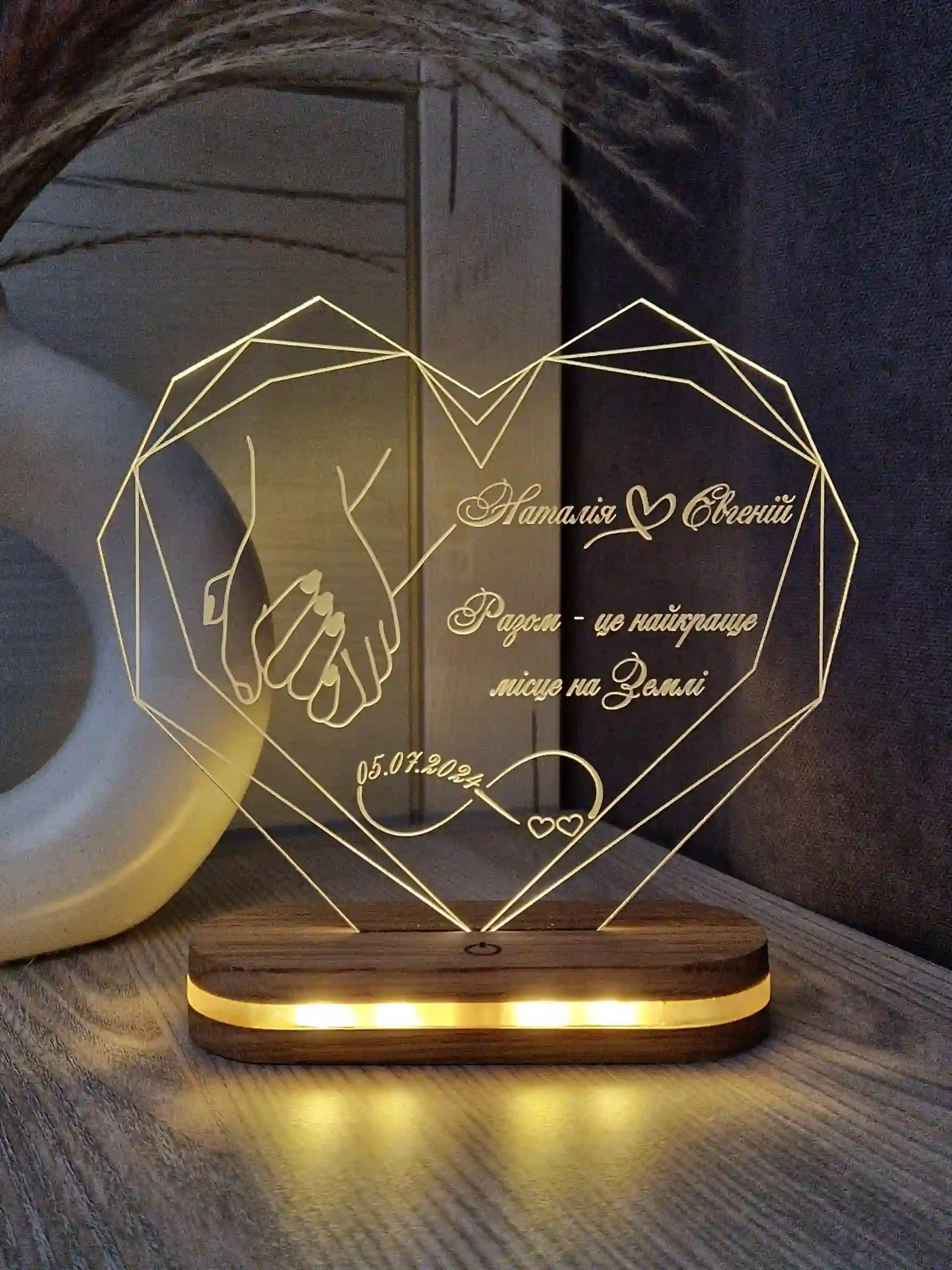 Акриловий світильник з унікальним дизайном на сімейну річницю