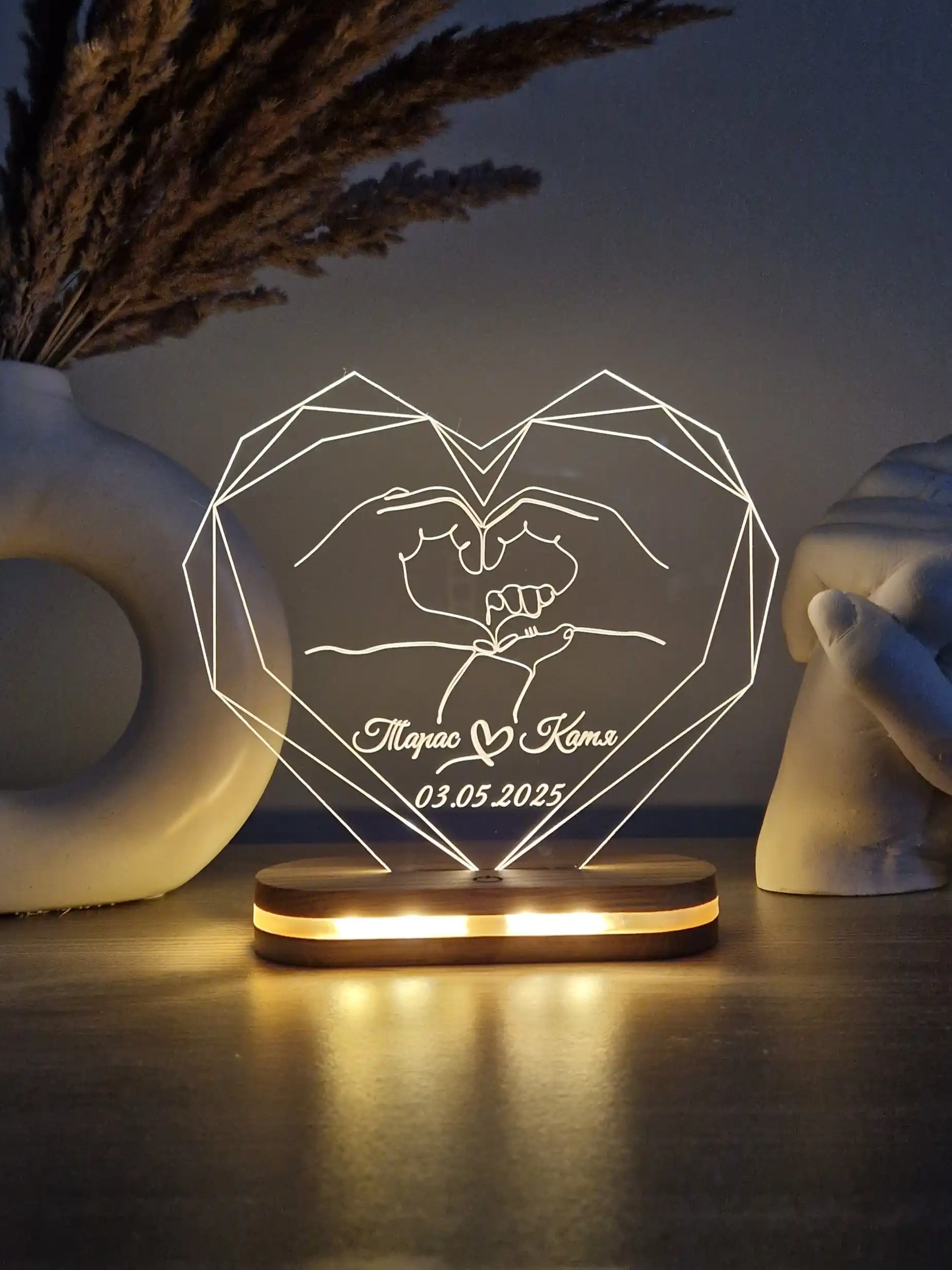 Індивідуальне гравіювання: Максимально швидке та ефективне гравіювання персоналізованого повідомлення чи ім’я робить цей світильник ідеальним подарунком на будь-який привід. Зверніться до нас, і ми зробимо все можливе, щоб ваші індивідуальні надписи були готові якнайшвидше, не займаючи багато часу. (Приклади гравіювання на фото)